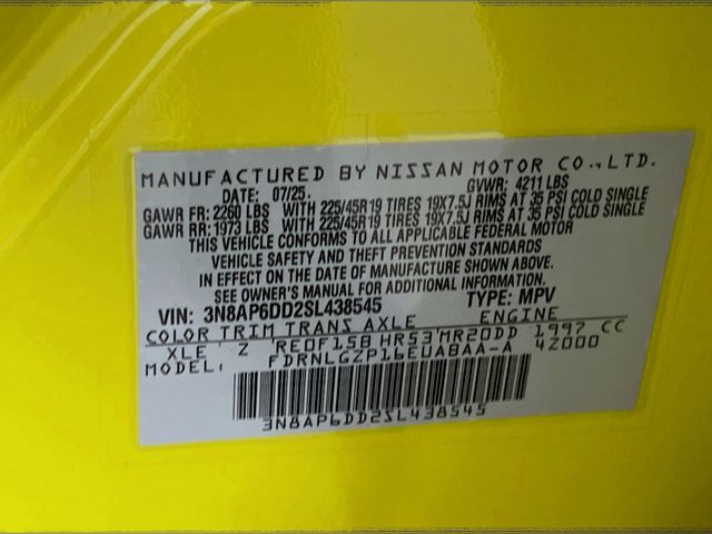 Yuzu Yellow Metallic/Super Black 2025 Nissan Kicks SR AWD CVT with Xtronic 2.0L DOHC Bose 10 -Speaker Audio, Driver Seat-Mounted Supplemental Air Bag, Heated Front Seats, Heated Steering Wheel, Panoramic Moonroof, Rain Sensing Wipers, Remote Engine Start, SR Premium Package, 17" Alloy Wheels, 2-Tone Premium Paint, 4-Wheel Disc Brakes, 6 Speakers, ABS brakes, Air Conditioning, Alloy wheels, AM/FM radio: Sirius, Auto High-beam Headlights, Automatic temperature control, Brake assist, Bumpers: body-color, Carpeted Floor Mats, Crossbars, Delay-off headlights, Driver door bin, Driver vanity mirror, Dual front impact airbags, Dual front side impact airbags, Electronic Stability Control, Four wheel independent suspension, Front anti-roll bar, Front Bucket Seats, Front Center Armrest, Front reading lights, Fully automatic headlights, Heated door mirrors, Illuminated entry, Knee airbag, Leather Shift Knob, Leather steering wheel, Low tire pressure warning, Occupant sensing airbag, Outside temperature display, Overhead airbag, Overhead console, Panic alarm, Passenger door bin, Passenger vanity mirror, Power door mirrors, Power steering, Power windows, Radio data system, Radio: AM/FM Audio System, Rear anti-roll bar, Rear reading lights, Rear seat center armrest, Rear side impact airbag, Rear window defroster, Rear window wiper, Remote keyless entry, Security system, Speed control, Speed-sensing steering, Splash Guards, Split folding rear seat, Spoiler, Sport steering wheel, Steering wheel mounted audio controls, Tachometer, Telescoping steering wheel, Tilt steering wheel, Traction control, Trip computer, Turn signal indicator mirrors, Variably intermittent wipers, Wireless Apple CarPlay/Wireless Android Auto, Bose 10 -Speaker Audio, Driver Seat-Mounted Supplemental Air Bag, Heated Front Seats, Heated Steering Wheel, Panoramic Moonroof, Rain Sensing Wipers, Remote Engine Start, SR Premium Package.