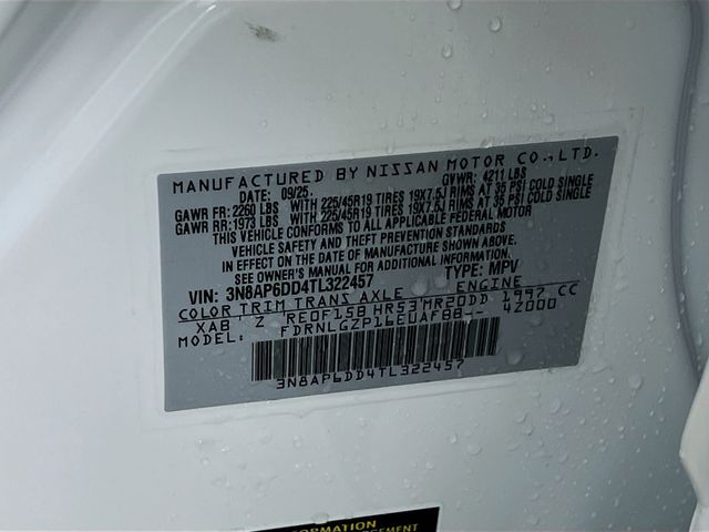 Aspen White Tricoat/Super Black 2026 Nissan Kicks SR AWD CVT with Xtronic 2.0L DOHC ABS brakes, Active Cruise Control, Alloy wheels, Electronic Stability Control, Illuminated entry, Low tire pressure warning, Remote keyless entry, Traction control, 17" Alloy Wheels, 4-Wheel Disc Brakes, 6 Speakers, Air Conditioning, AM/FM radio, Auto High-beam Headlights, Automatic temperature control, Brake assist, Bumpers: body-color, Delay-off headlights, Driver door bin, Driver vanity mirror, Dual front impact airbags, Dual front side impact airbags, Emergency communication system: NissanConnect Services, Exterior Parking Camera Rear, Four wheel independent suspension, Front anti-roll bar, Front Bucket Seats, Front Center Armrest, Front reading lights, Fully automatic headlights, Garage door transmitter: myQ Connected Garage, Knee airbag, Leather Shift Knob, Leather steering wheel, NissanConnect featuring Apple CarPlay and Android Auto, Occupant sensing airbag, Outside temperature display, Overhead airbag, Overhead console, Panic alarm, Passenger door bin, Passenger vanity mirror, Power door mirrors, Power steering, Power windows, Radio data system, Radio: AM/FM/SiriusXM Audio System, Rear anti-roll bar, Rear reading lights, Rear seat center armrest, Rear side impact airbag, Rear window defroster, Rear window wiper, Security system, Speed control, Speed-sensing steering, Split folding rear seat, Spoiler, Sport Leatherette w/Cloth Insert Seat Trim, Sport steering wheel, Steering wheel mounted audio controls, Tachometer, Telescoping steering wheel, Tilt steering wheel, Trip computer, Turn signal indicator mirrors, Variably intermittent wipers, ABS brakes, Active Cruise Control, Alloy wheels, Electronic Stability Control, Illuminated entry, Low tire pressure warning, Remote keyless entry, Traction control.